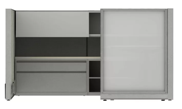 The Compose AS-IS Single Workstation (Cherry/Silver) combines style and function in a compact design. Standing 50″ tall, it features TR-LE Metallic Silver smooth panel trim and L5-AT Movie panel fabric for a sleek, professional look. The wood-look H-KF Williamsburg Cherry laminate tile adds warmth and character. The credenza uses H-DE/HP-34 laminate for a coordinated finish. The lift tabletop pairs Formica 6920-58 Mineral Spa laminate with a F-858 Pumice edge band, creating a refined, modern surface. Built for durability, comfort, and style, this workstation supports high-performance office environments.