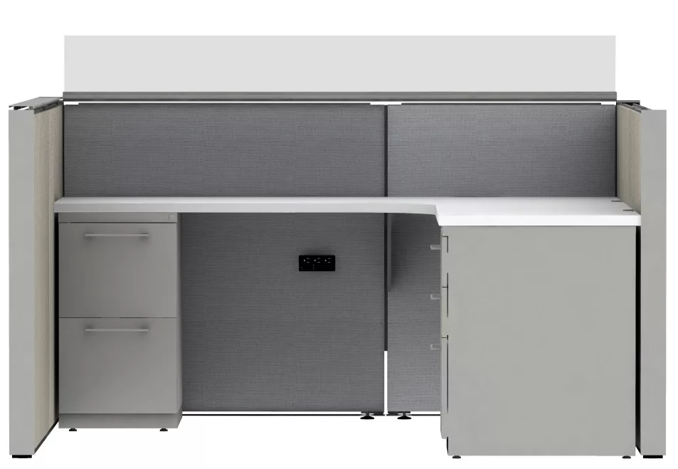The Compose AS-IS Single Workstation (Smoke) combines modern style with everyday functionality. This 6×6 workstation uses 8″ glass panels on top of every wall, letting natural light brighten the space while maintaining privacy. The 30″ and 42″ panels feature 1A-WS11 fabric, while the 36″ panels use C1-AM fabric. TR-E Smoke trim adds a sleek, professional look. A durable Allsteel work surface stands up to daily use. The Allsteel 24″-deep pedestals match the smoke trim and provide convenient storage. This workstation fits perfectly in offices that value both design and efficiency.