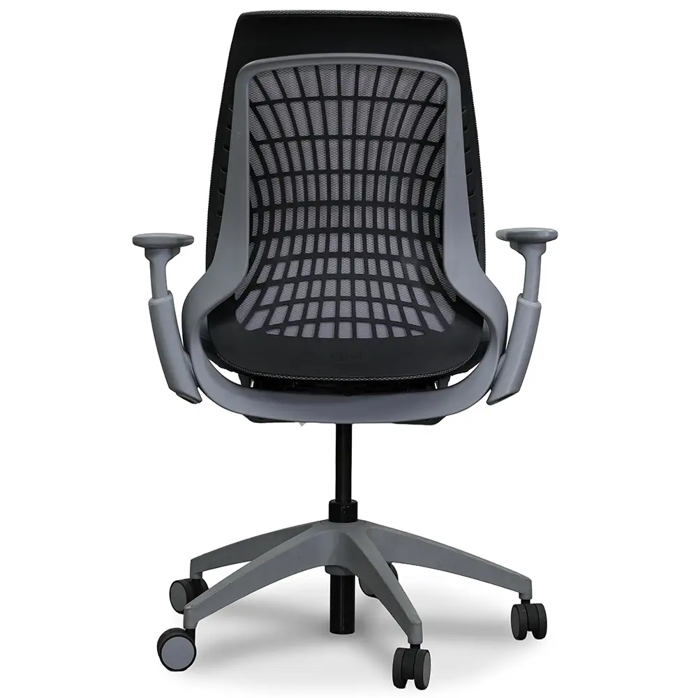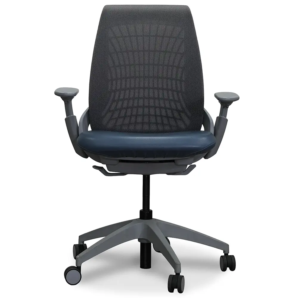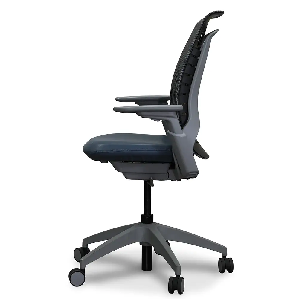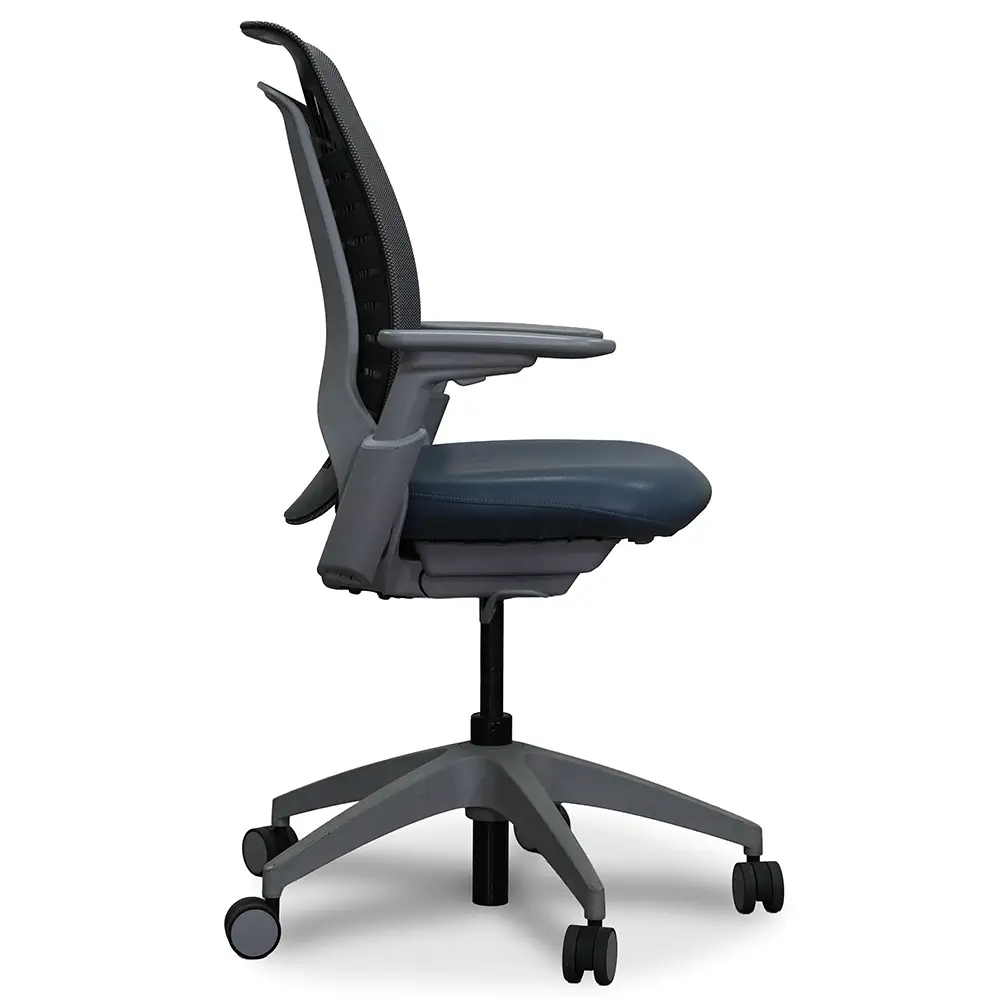Elevate your workspace with the Allsteel Mimeo Task Chair. It offers the perfect balance of design and comfort. The Fog knit back provides flexibility that moves with you. The Brisa Cambridge Blue seat upholstery adds a touch of refined sophistication. With adjustable arms, a smooth tilt lock mechanism, and multi-surface casters, Mimeo adapts effortlessly to you. Its sleek Titanium frame and Graphite back carrier create a cohesive, modern aesthetic that fits beautifully in any workspace.