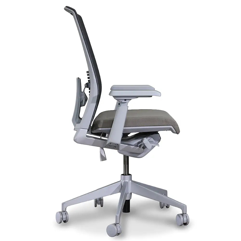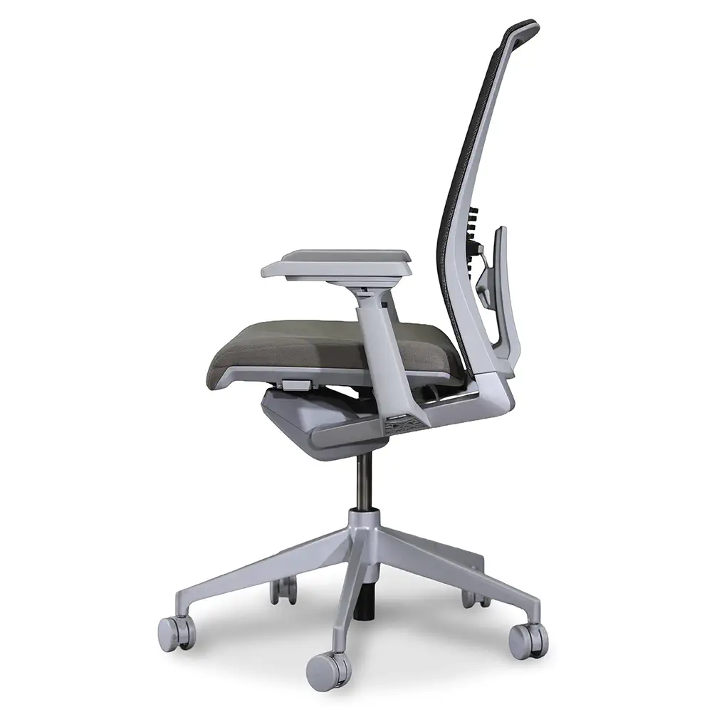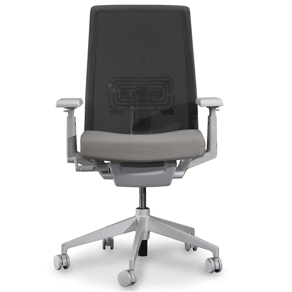 The Haworth Very Task Chair offers ergonomic support with a modern aesthetic. It features a silver and gray frame, adjustable arms, seat slide, and tilt lock for all-day comfort. A great fit for workstations, private offices, or collaborative environments.