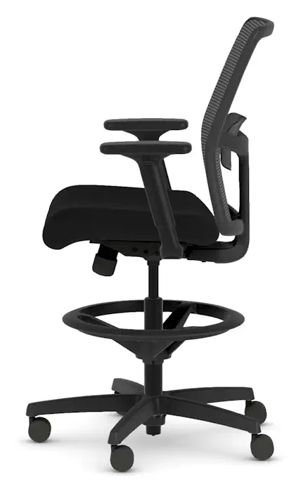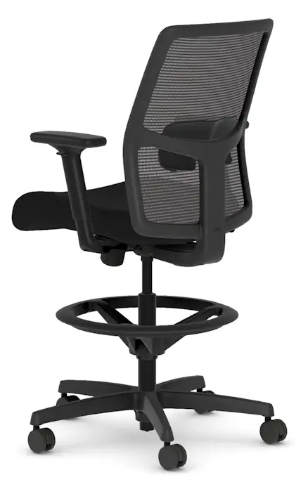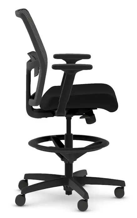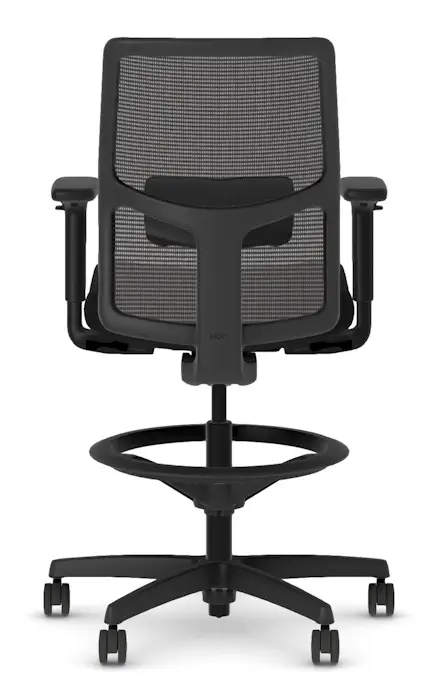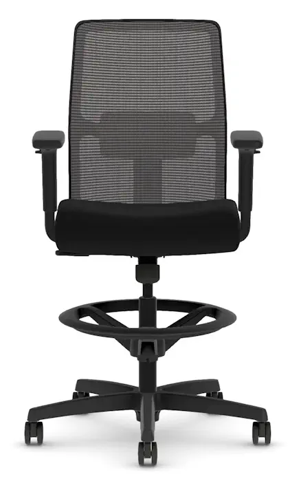 Work elevated and stay supported with the HON Ignition 2.0 Low Back Stool. Designed for sit-to-stand workstations and high counters, it features a breathable Ilira™ mesh back and a cushioned Centurion Black upholstered seat for long-lasting comfort. The limited synchro-tilt mechanism encourages movement while maintaining balance and control. Easily find your ideal posture with height- and width-adjustable arms, adjustable lumbar support, and a sturdy standard black base. Hard casters offer smooth mobility, and the black frame delivers a clean, modern finish.
